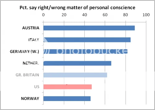 When asked the question of whether “right or wrong should be a matter of personal conscience,” which is a fundamental measure of individualism as we’ve defined it, we get the following results: